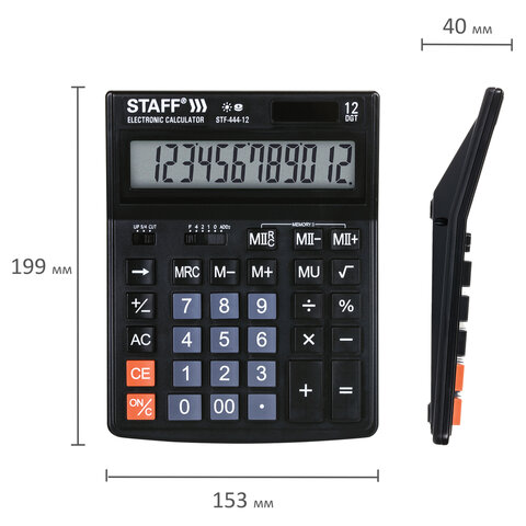 Простой в использовании и точный в расчётах настольный калькулятор STAFF STF-444-12 выполняет все необходимые вычисления на работе и дома. Кнопки нажимаются легко и приятно, эргономичный наклон корпуса позволяет работать с максимальным комфортом.
