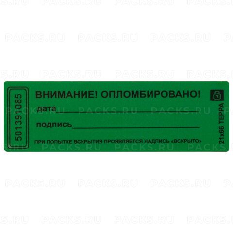 Предназначены для опломбирования объектов, на которых нет проушин или иных отверстий. При несанкционированном вскрытии проявляется скрытый текст на поверхности наклейки. После отклеивания невозможно приклеить обратно к поверхности опломбирования, скрыв индикацию срабатывания. Применяется для опломбирования почтовых и курьерских посылок, писем, архивов, контейнеров, сейфов, шкафов, дверей, монетоприемников, офисной техники, инкассаторских сумок, банкоматов, окон, медицинских контейнеров и т.д. При отклеивании не оставляют следа на опломбируемой поверхности.